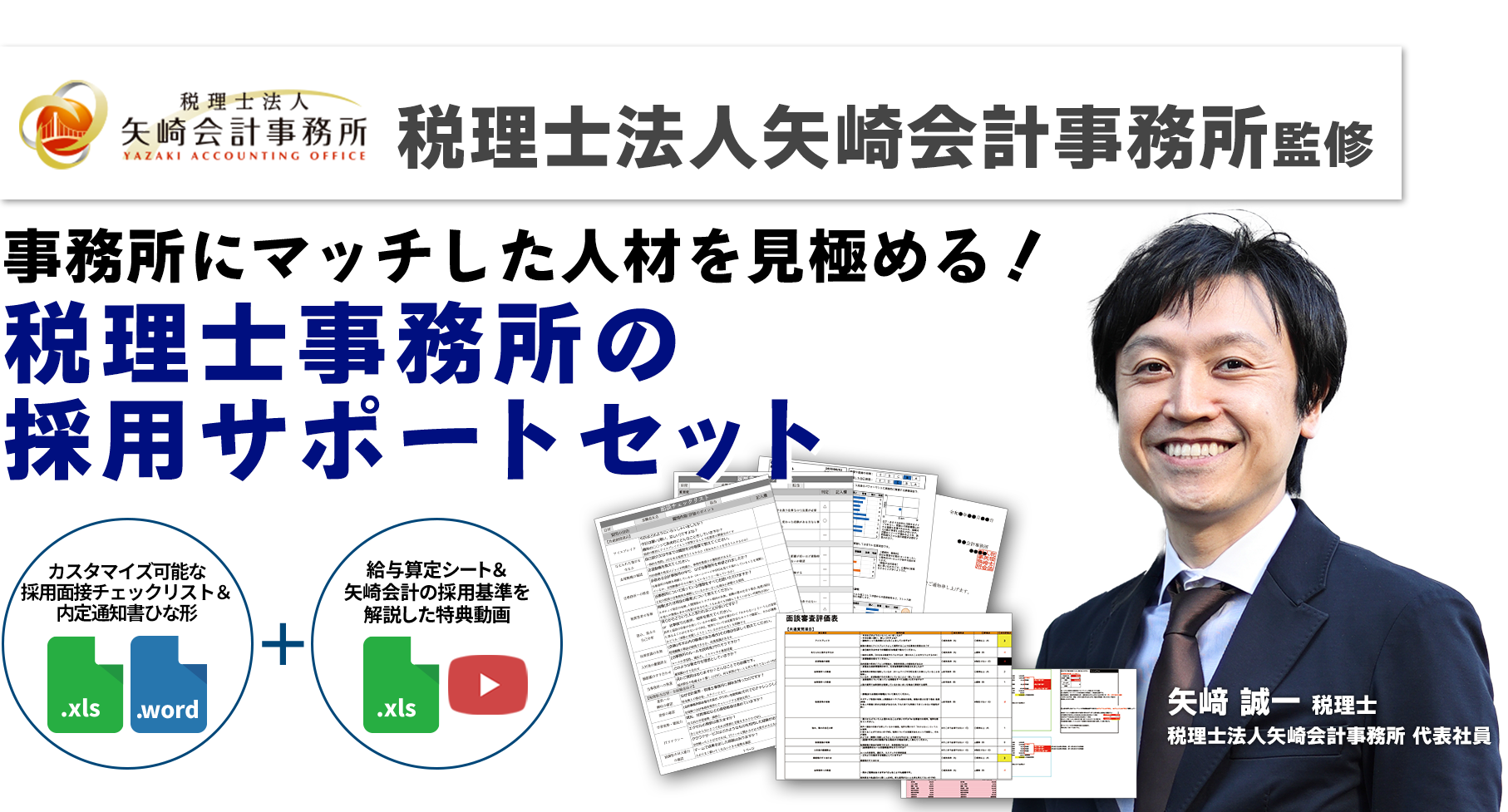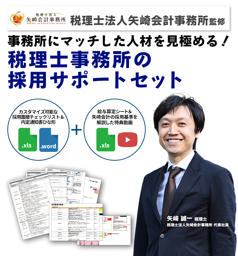 自走できるチームを生む事務所運営を実現させている税理士法人矢崎会計事務所監修のもと、実際の採用現場で培われた、再現性のあるフォーマットで、