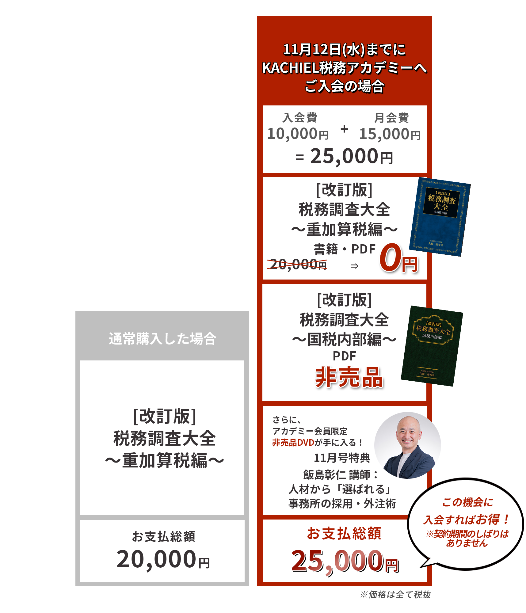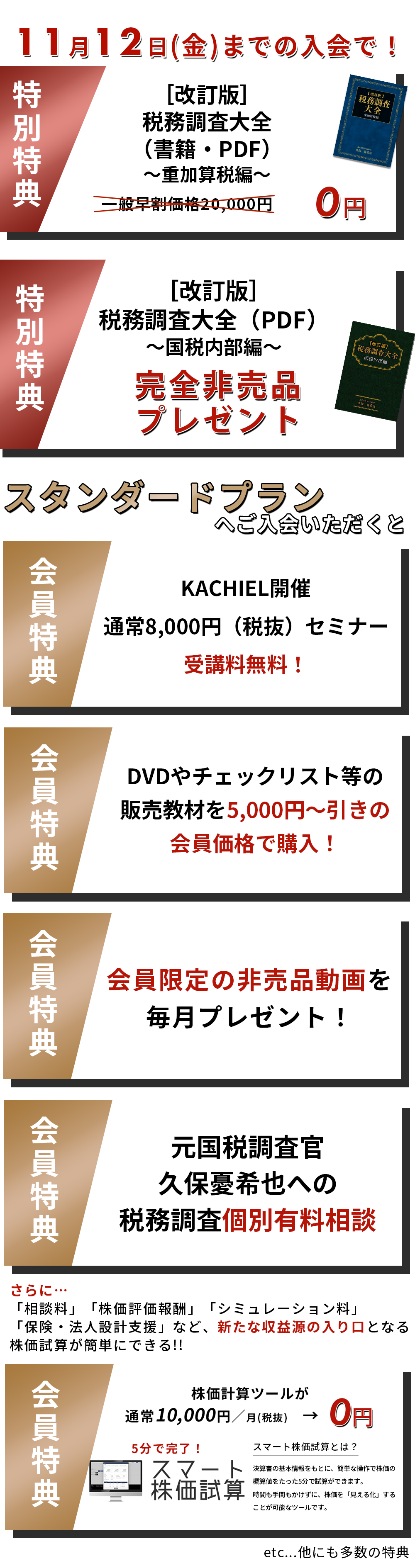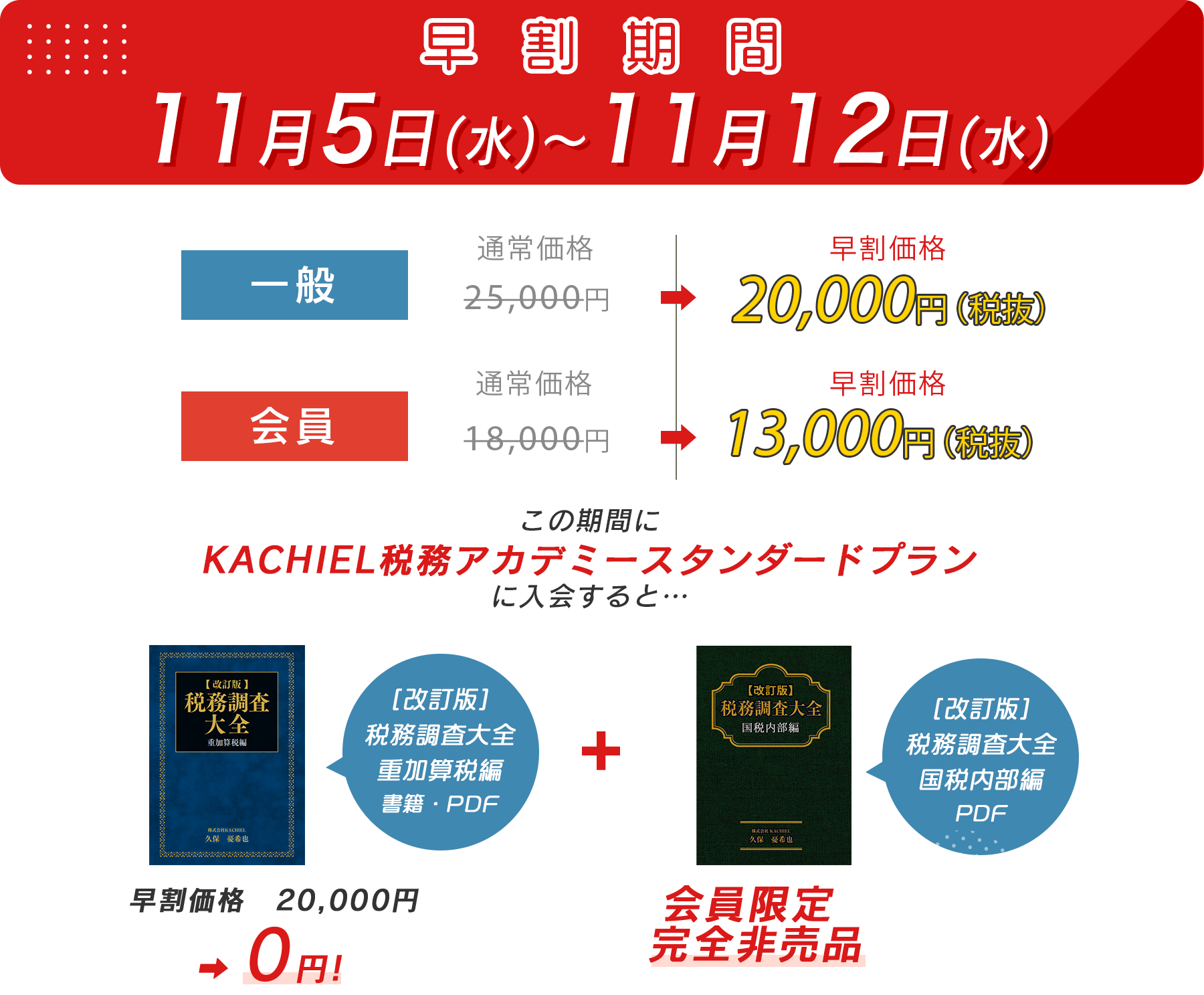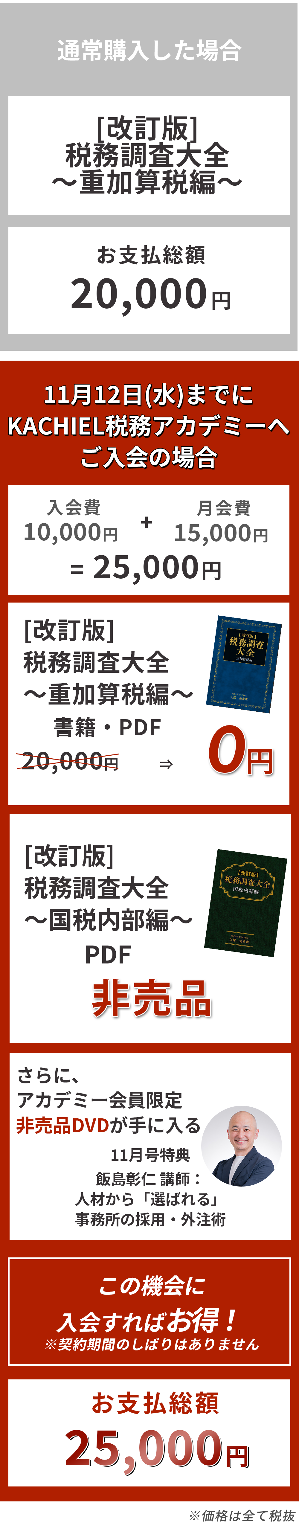 会員とは「KACHIEL税務アカデミースタンダード」及び「KACHIEL税務アカデミープレミアム」の会員を示します。会員ではないお客様が申し込まれた場合、ご注文はキャンセルされます。