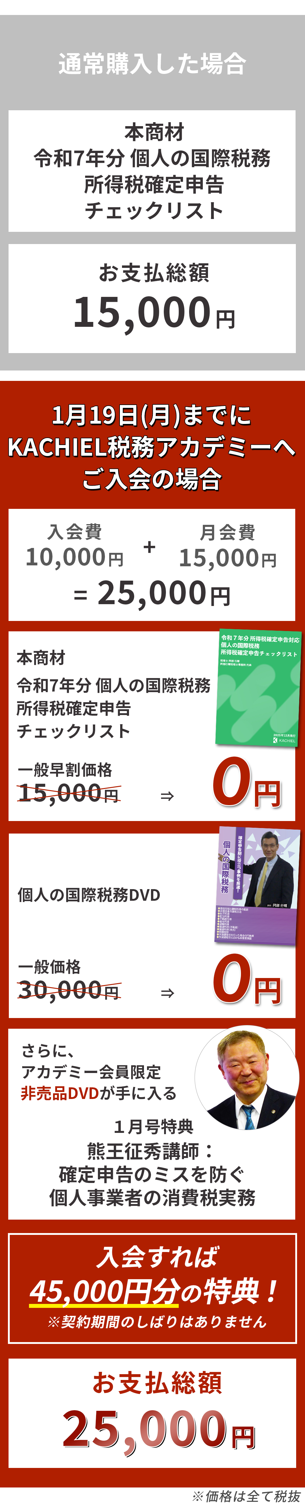 会員とは「KACHIEL税務アカデミースタンダード」及び「KACHIEL税務アカデミープレミアム」の会員を示します。会員ではないお客様が申し込まれた場合、ご注文はキャンセルされます。