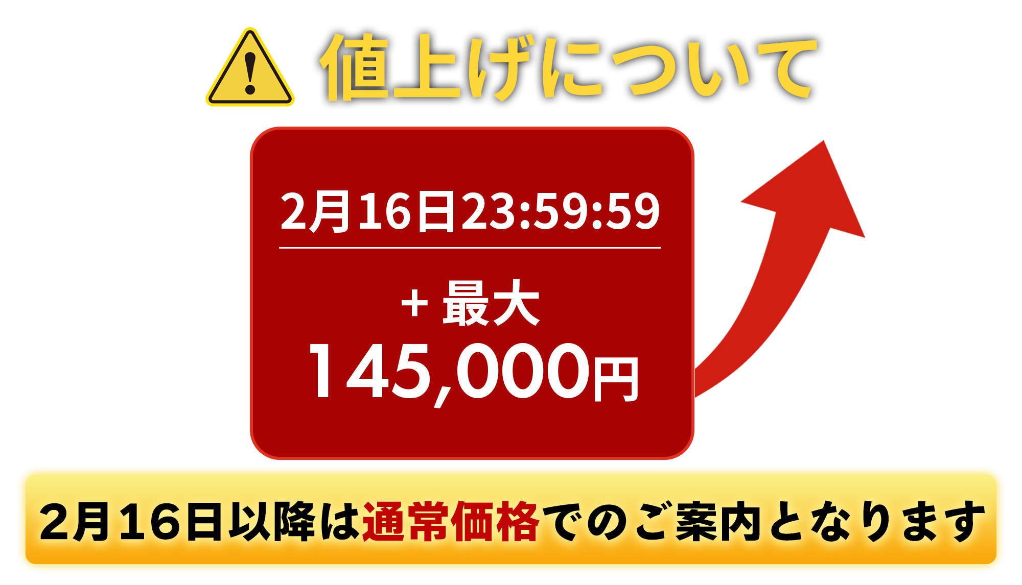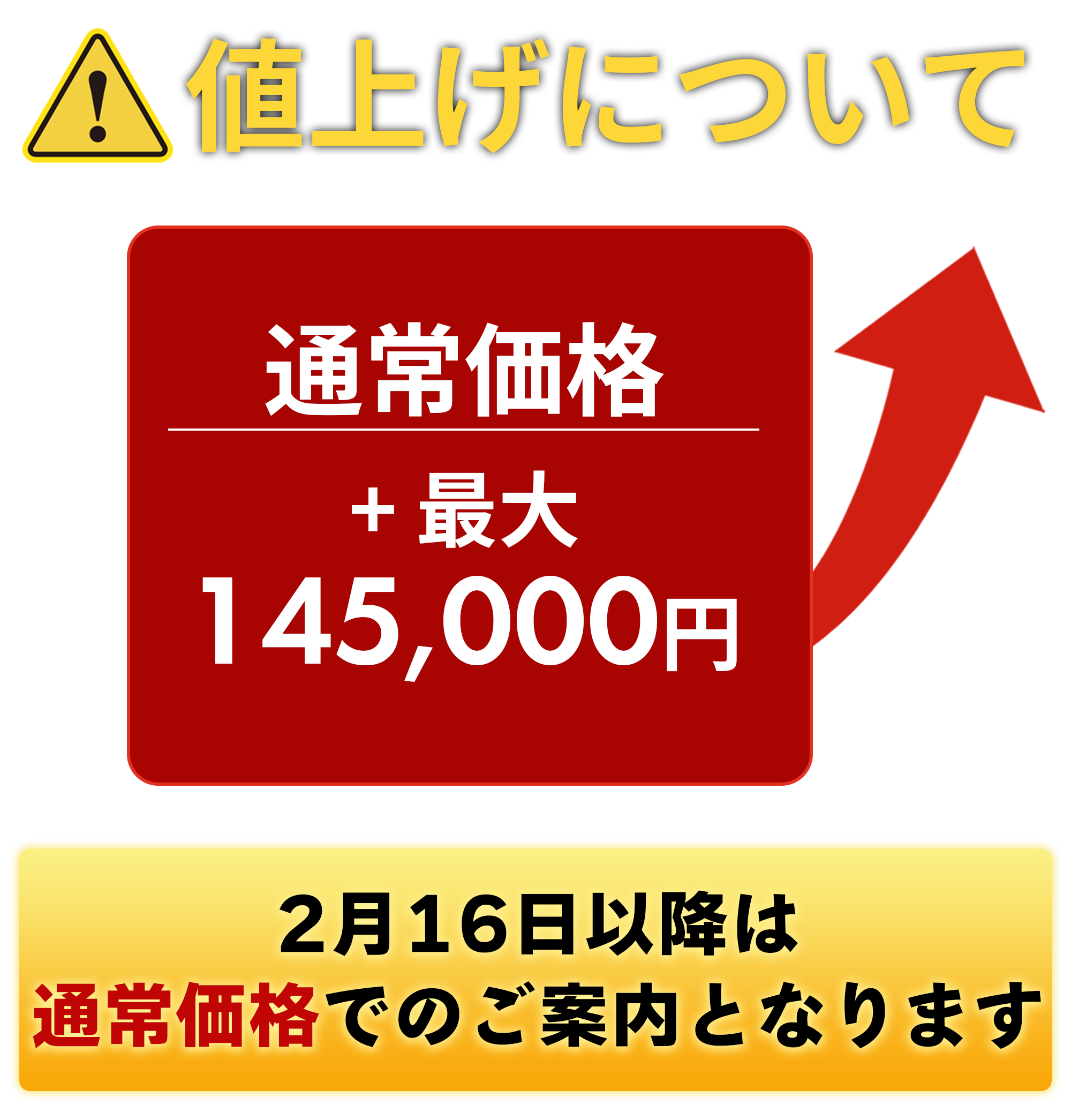- 早割終了後は最大14.5万円値上げいたします