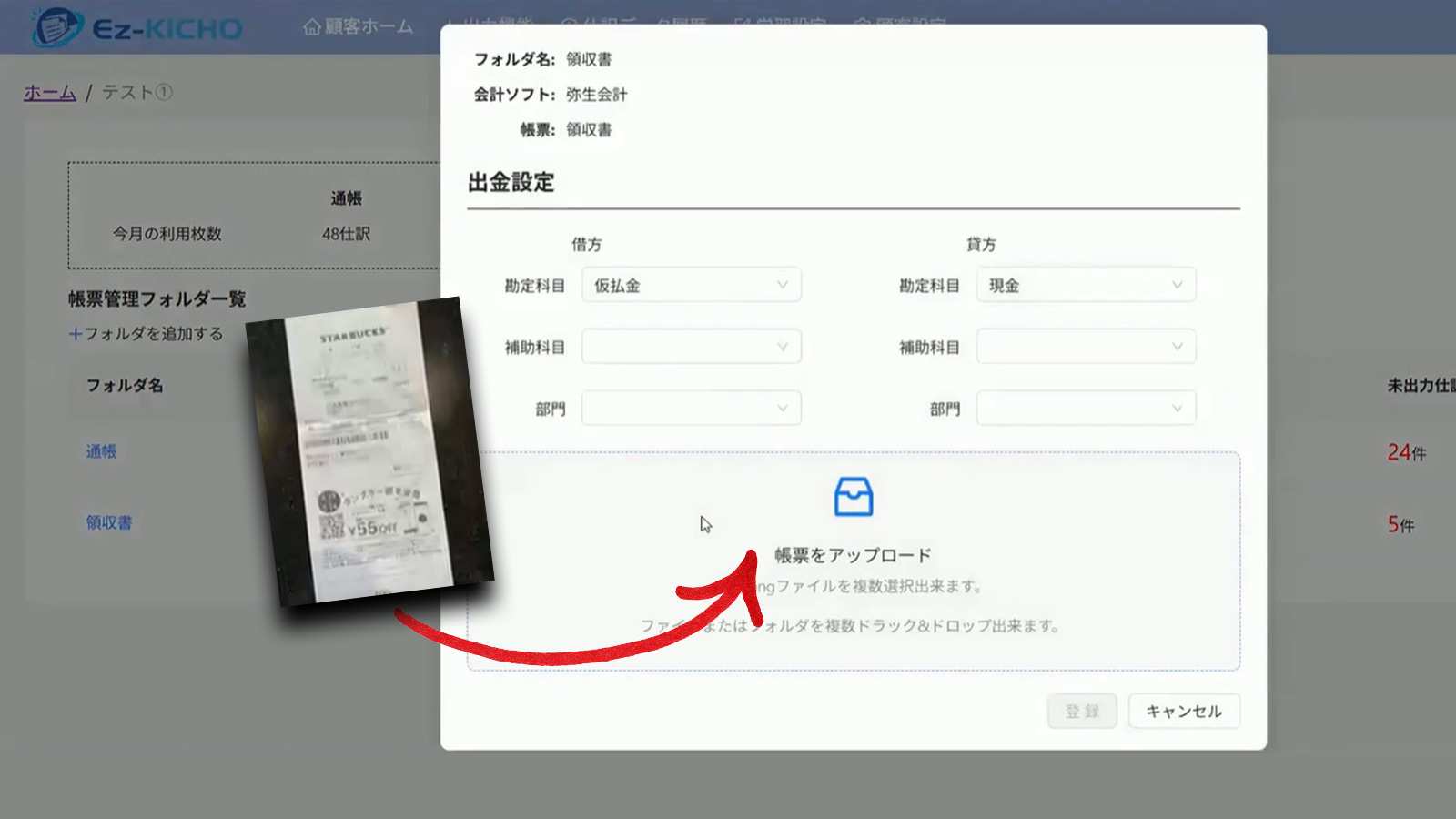 スマホで領収書や通帳の写真を撮っていただく形でも使用可能です。