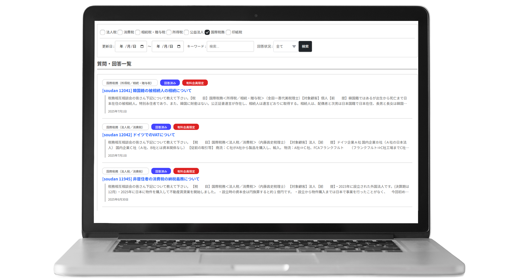 - ● 税務相互相談会でやり取りしている質問・回答の閲覧&検索